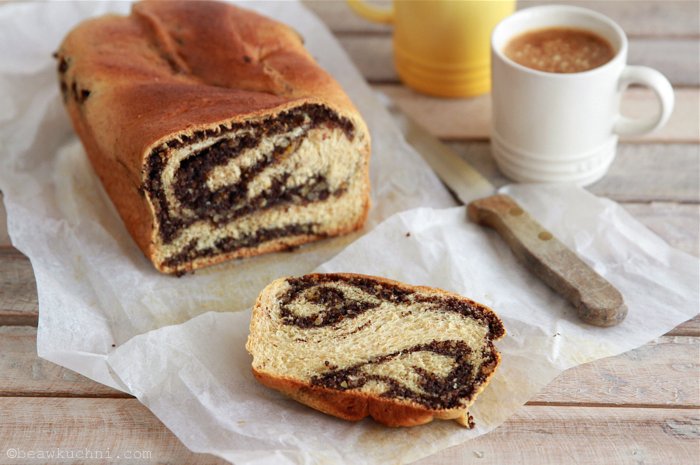 Na zdjęciu pyszny chleb orzechowy z miodem i mlekiem orzechowym. Mleko ma beżowy kolor, bo orzechy nie były obierane przed zmieleniem.